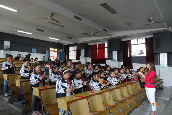 10月16日下午,阳光明媚,丹桂飘香,市实验小学迎来了冶金小学全体教师,他们在实小大多媒体教室听实小刘梁生校长对学校办学基本情况的简要介绍后,接着观看实小全体学生的霸王操表演,同学们身着霸王太极服,个个精神抖擞、活泼可爱。随着舞曲欢快的旋律,孩子们个个神采飞扬,动作有力到位,活力四射,明快的音乐节奏、动感的韵律让冶金小学全体教师啧啧称赞。然后,老师们参观实小学生的素质集训活动,素质集训是实验小学为了秉承“快乐学习,全面发展”的办学理念,为丰富学生的课余文化生活,全面提高学生的综合素养,让孩子享有快乐的童年,学校充分利用现有的设施设备及师资力量,自2007年开始全方位开展素质集训,共有器乐、乒乓球、书法、儿童画、手工制作等20多个丰富多彩的兴趣活动,每周五下午根据学生个性特长和兴趣爱好让学生自主参加,“总有一款适合你的”,丰富多彩的素质活动,将游艺与竞技相结合,使之成为全校师生狂欢的盛会。冶金小学教师忙于观看,忙于记录,忙于询问,实小相关陪同人员一一解答。据悉,冶金小学老师当天上午带领全校学生在野外秋游,老师们非常疲惫,中午未休息,来到实小,此情此景,欢快的校园令他们热血沸腾。冶金小学谢校长动情地说“从孩子们真挚的眼神里,我们看到的不仅是实小人充满希望的神话,更能感受到的是学校生生不息的生命的力量!希望我们常来常往,交流学习。”
